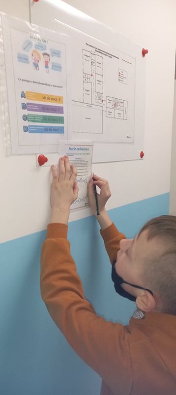 Uczniowie utrwalili sobie wiadomości i umiejętności bezpiecznego korzystania z internetu. Podsumowaniem zajęć była „Stacja zadaniowa” , gra dydaktyczna włączająca ucznia do aktywnego zdobywania umiejętności.
