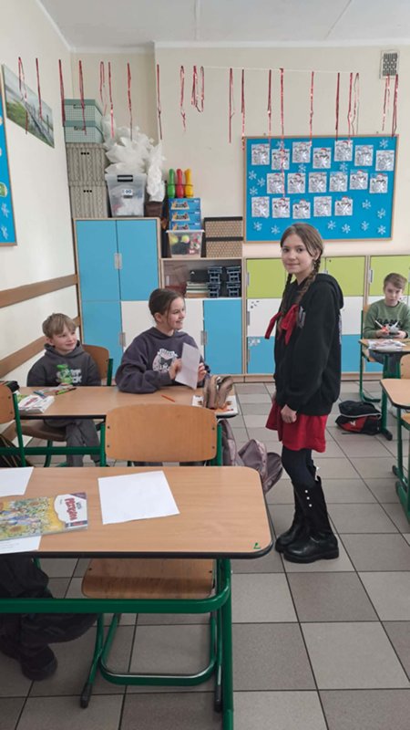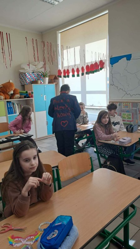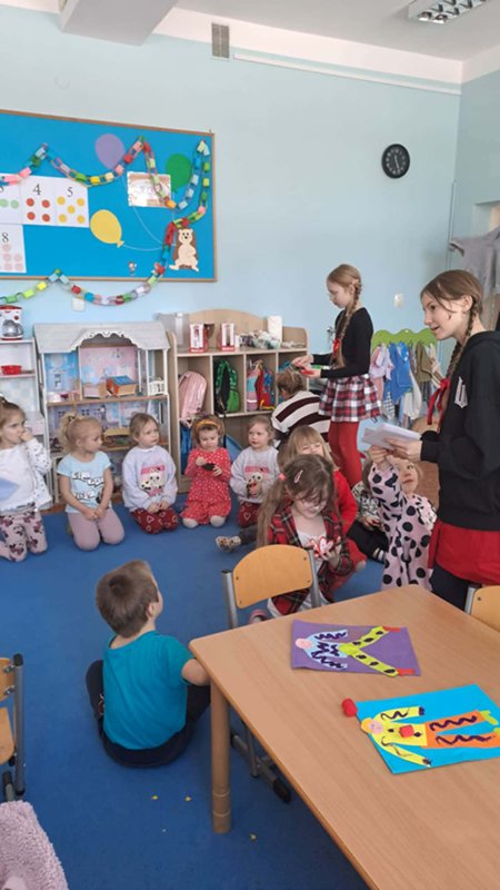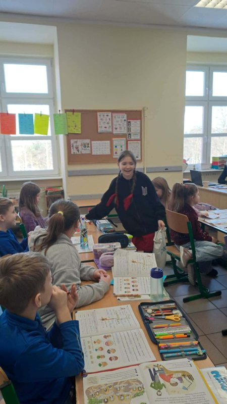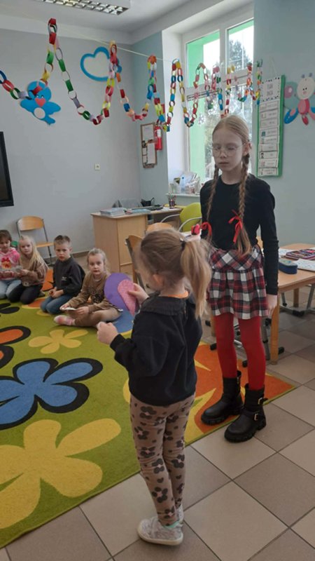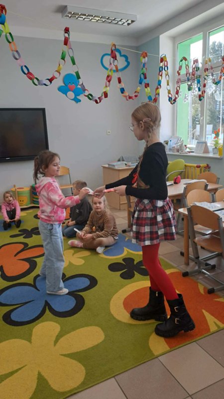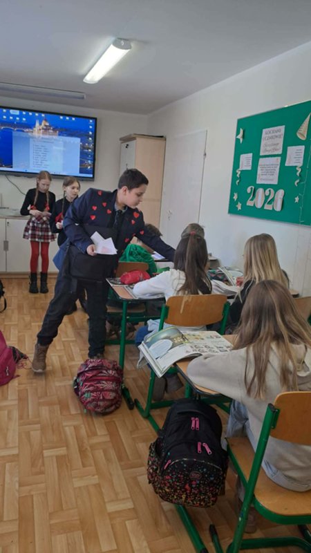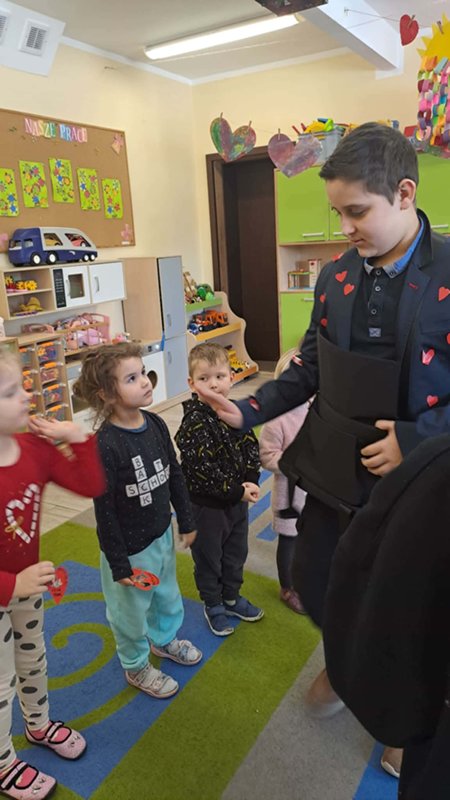Tego dnia przedstawiciele Samorządu Uczniowskiego roznosili ,,pocztę walentynkową” – liściki, miłe słowa, które kilka dni wcześniej chętne osoby umieszczały do szkolnej ,,poczty”. Dziś wszystkie listy trafiły do adresatów i wywołały wiele pozytywnych uczuć oraz mnóstwo uśmiechów na twarzach zarówno Przedszkolaków, jak i starszych Uczniów.