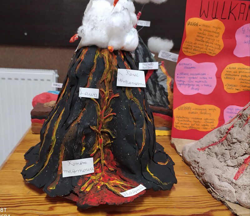 Niemal 100% klasy VI podjęło się tego zadania. Wykonali przepiękne wulkany, wraz z opisami, następnie przeprowadzili doświadczenie, podczas którego wulkany wybuchały.