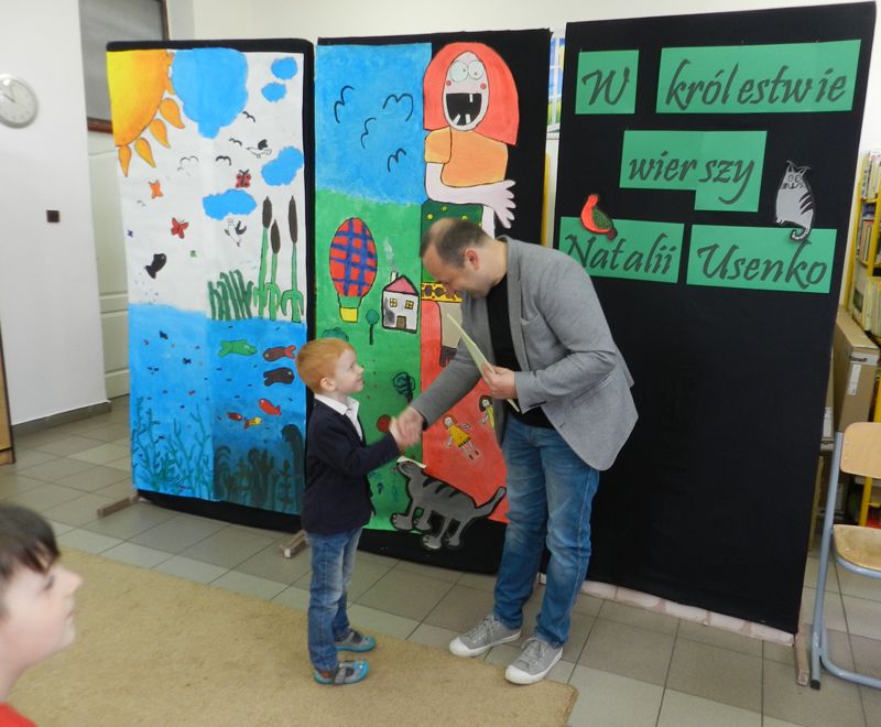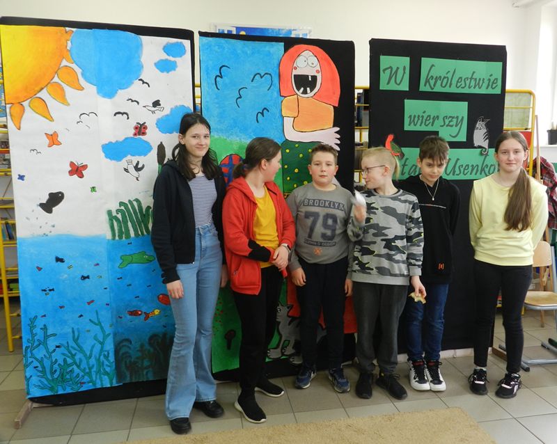 W przygotowanie konkursu zaangażowali się również uczniowie klasy szóstej i siódmej, którzy zaprojektowali i wykonali ilustracje do wierszy Natalii Usenko. Dziękujemy wszystkim, którzy pomogli w realizacji konkursu rozwijającego umiejętności recytatorskie naszych najmłodszych uczniów.