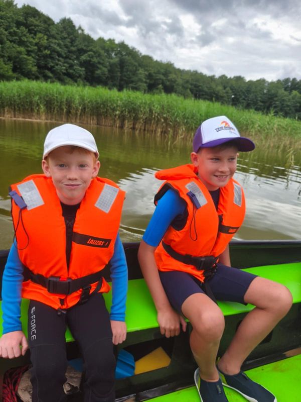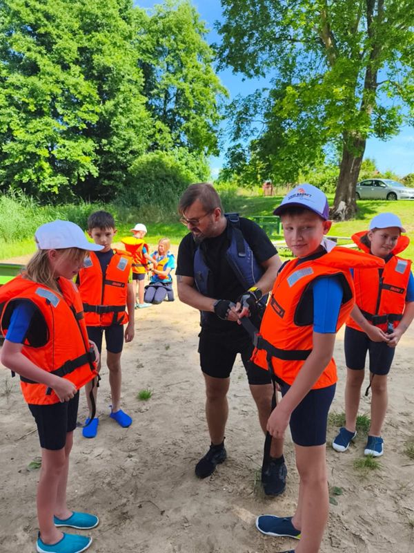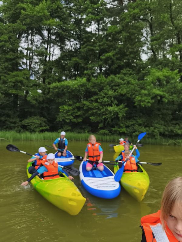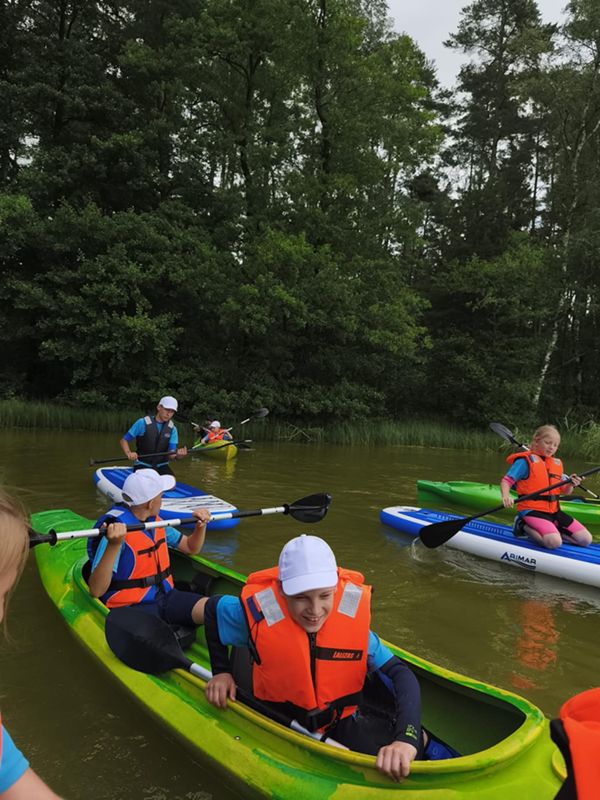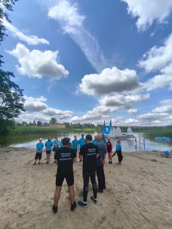 Zajęcia odbywały się na dwóch malowniczych akwenach: jeziorze Trzebież w Nożynie oraz jeziorze Jasień w Łupawsku. Półkolonie to jednak nie tylko nauka – to także czas integracji i wspólnej zabawy. Uczestnicy brali udział w licznych grach zespołowych, a przy ognisku, śpiewając szanty i dzieląc się wrażeniami z całego dnia. Każdego dnia czekał na nich pyszny, dwudaniowy obiad, który dodawał energii do dalszych aktywności.