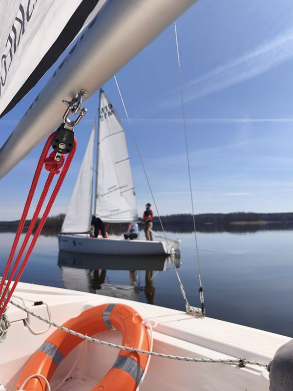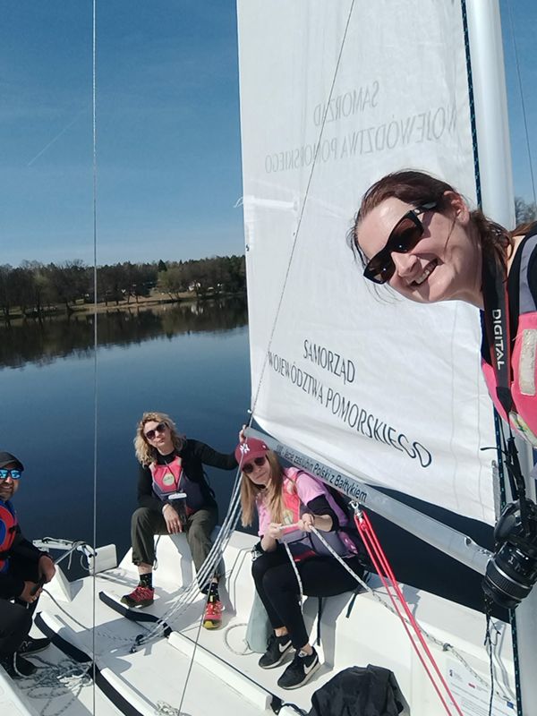 Pogoda absolutnie nas rozpieszczała! Każdy uczestnik mógł sprawdzić teorię w boju. Szoty foka, grota, zwroty przez sztag i rufę – po dzisiejszych manewrach te pojęcia na pewno nie są już nikomu obce!