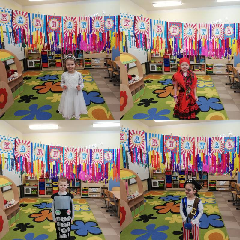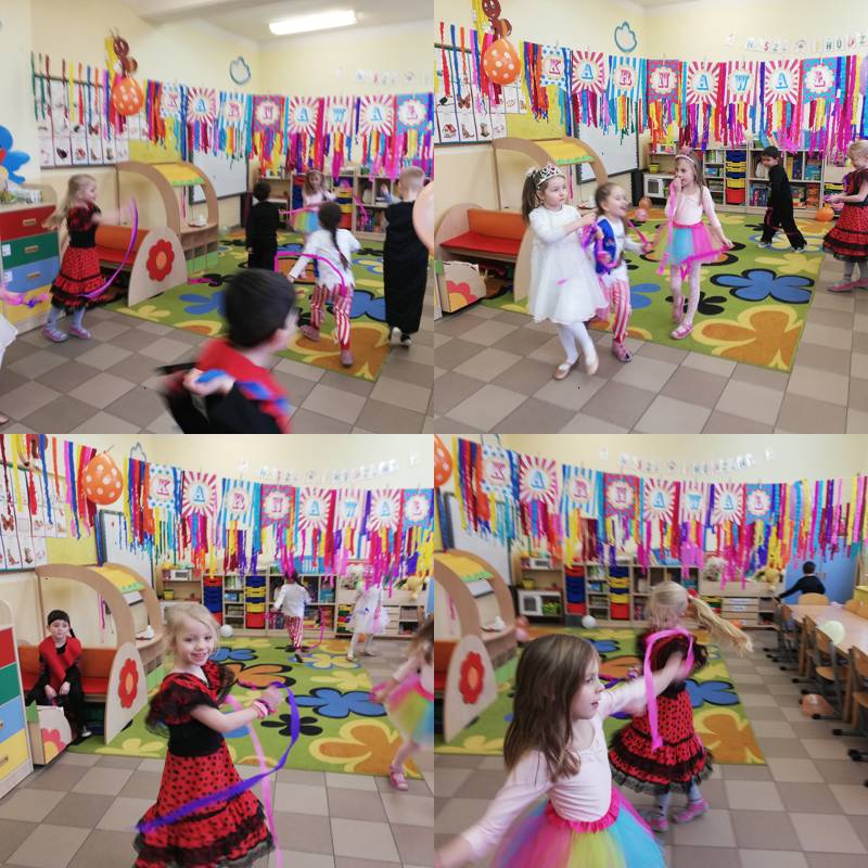 W dniu 28.01.2022r. w naszym przedszkolu odbył się długo wyczekiwany Bal Karnawałowy. W salach przedszkolnych można było spotkać wróżki, księżniczki, motylki, piratów, policjantów i wiele innych postaci.