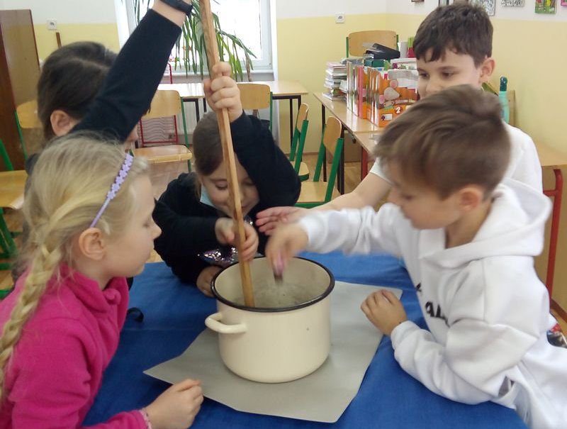 Uczniowie klas I-III uczestniczyli w warsztatach profilaktycznych „Wywar złości z czarnej kości”. Spotkanie było poświęcone zagadnieniom związanym z emocjami.