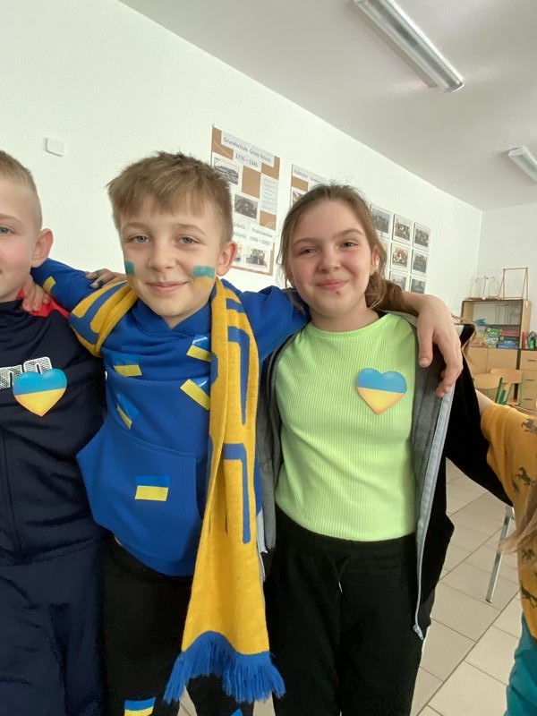 Na znak solidarności z Ukrainą wszyscy przebrali się w barwy narodowe tego kraju, uczniowie dumnie nosili przypięte kotyliony. Warto dodać, że nasi wolontariusze w ubiegłą sobotę również odwiedzili miejsce zbiórki i czynnie pomogli w rozpakowywaniu i segregacji odzieży oraz zabawek. Dziękujemy wszystkim, którzy dołożyli swoją „cegiełkę” i zechcieli pomóc najbardziej potrzebującym! Dobro wraca.