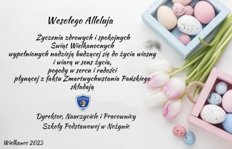 Z okazji zbliżających się Świąt Wielkanocnych składamy Dyrekcji, Nauczycielom, Pracownikom Obsługi i Administracji, Rodzicom i Uczniom