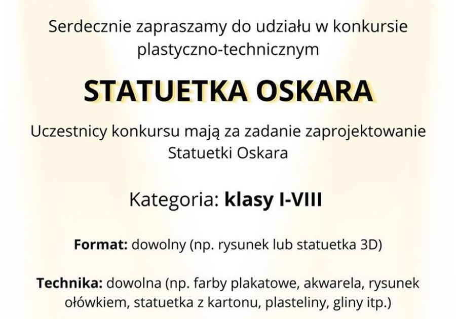 Serdecznie zapraszamy do udziału w konkursie plastyczno-technicznym Statuetka Oskara