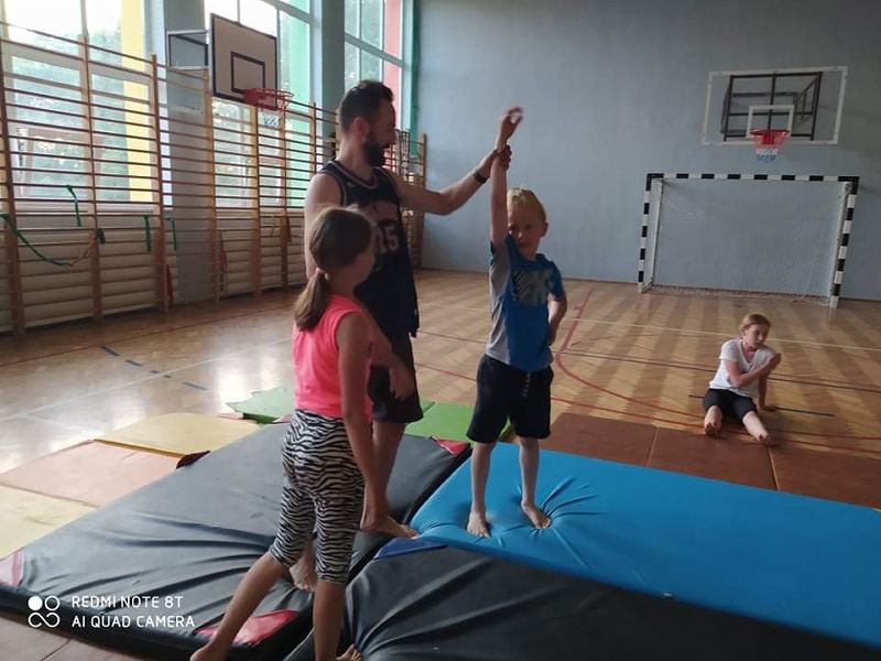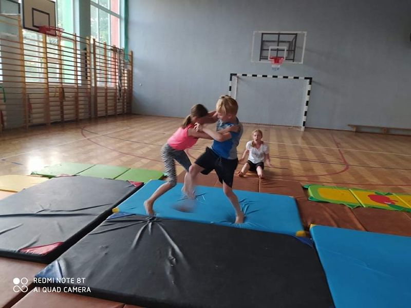 Wycieczkę rozpoczęliśmy o godziny 15:00. Po 12 km dojechaliśmy do Jasienia gdzie schłodziliśmy nogi i zjedliśmy pyszne lody. Z powrotem pojechaliśmy trochę dłuższą trasą i tak po w sumie 26 km dojechaliśmy do naszej szkoły na ognisk. Po spaleniu 1300 kcal zasłużenie zjedliśmy kiełbaski i przenieśliśmy się do sali gimnastycznej na zajęcia JUDO.